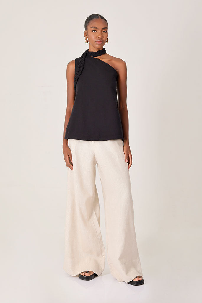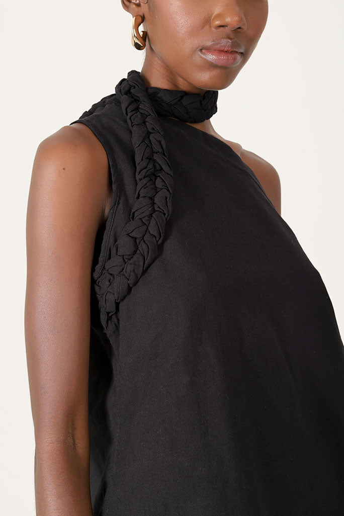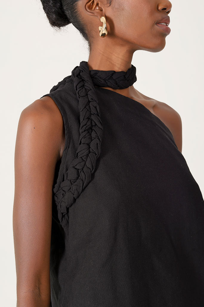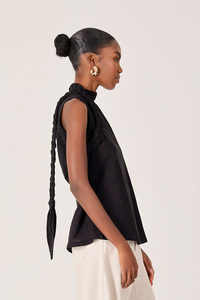 Nuestro Braid Top no es solo una blusa, es esa pieza que ilumina cualquier look. Su detalle de trenza que rodea el cuello y cae delicadamente por la espalda, la hace un statement perfecto para esos días en los que quieres que tu outfit hable por ti.