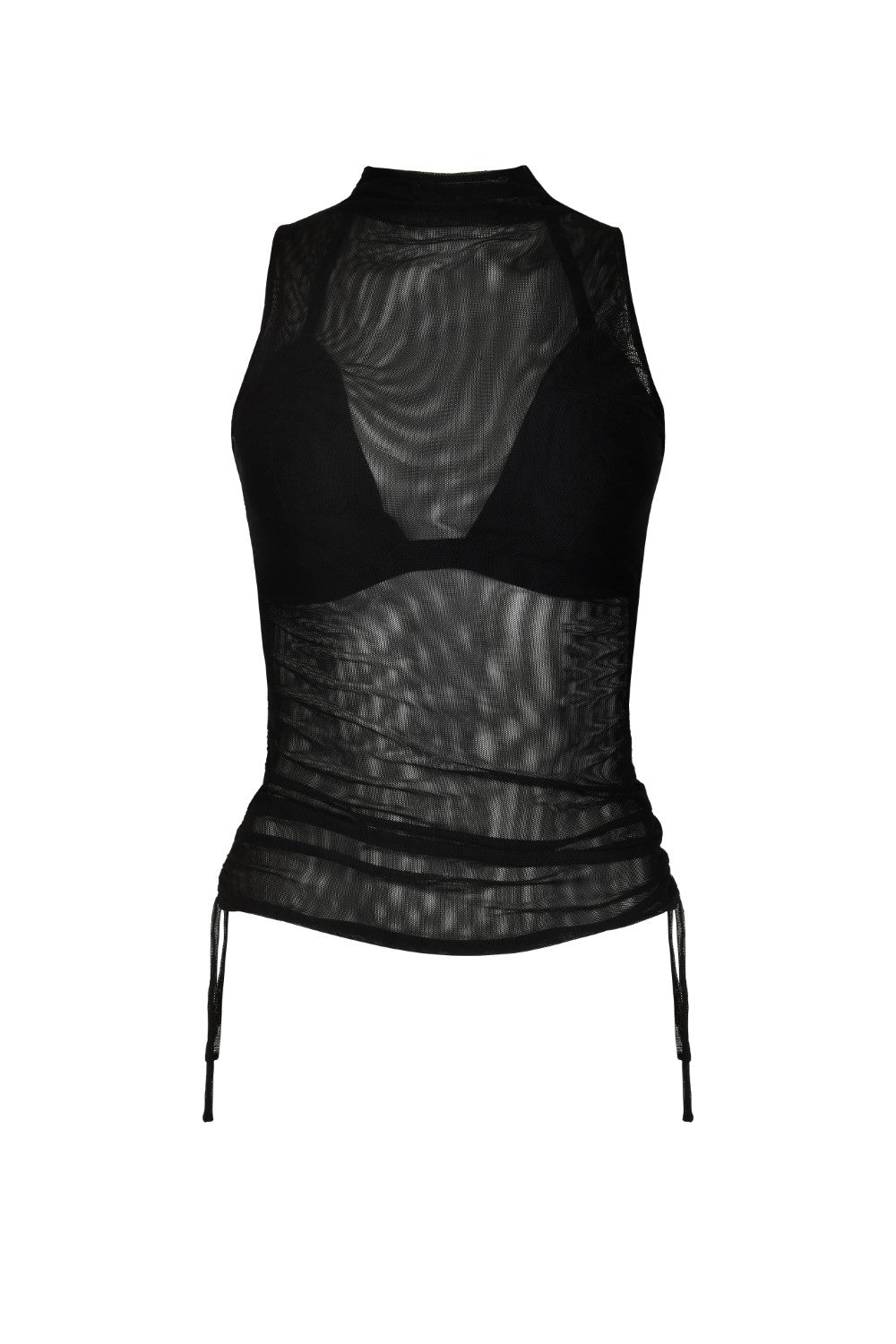 The ultimate cool girl top. Made out of 100% mesh fabric that shows through the built in bra top underneath. Versatile style that can easily pair with jeans for a casual look or a black mini skirt for a girls night out.
