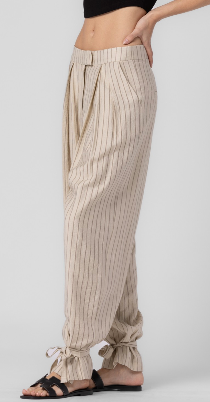 Woven striped ankle tie pants.