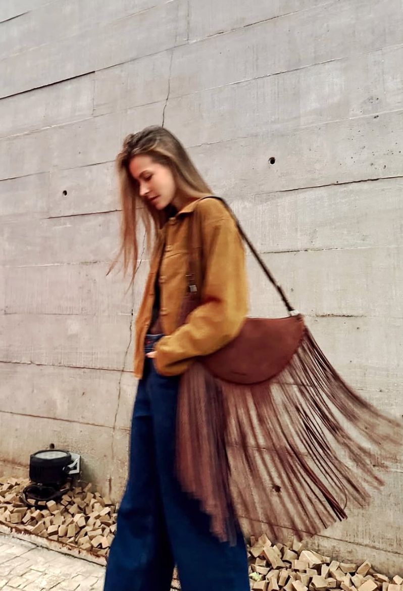 With a striking signature design, the Manu Bag stands out for its combination of fine materials and the handcrafted application of extra-long fringes, which add movement and personality to the look.