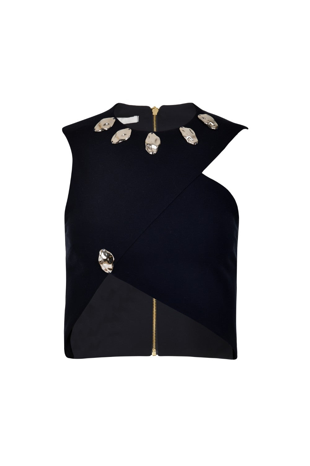 A top that definitely stands out. The tala top features gold metal details on the collar and an asymmetric cut in the abdomen area. Make a statement wearing the Tala Top and Lunara Pants.